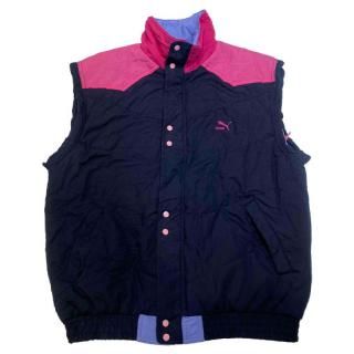 リメイクPUMA ダウンベスト。着用感はあるが汚れなし。カラフルなスナップボタンが可愛い。内ポケットやひも付き。おしゃれな着こなしの一着。