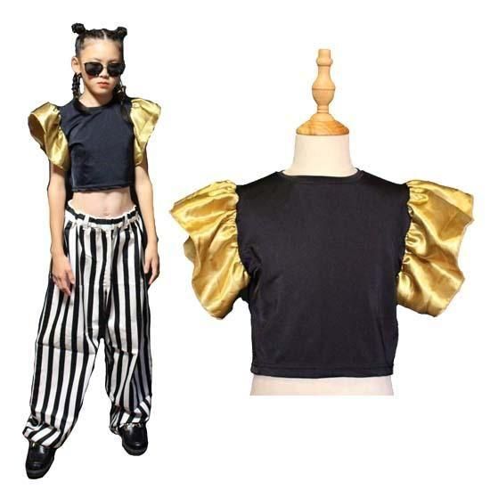 胸部分にはストレッチ生地を使用しており、動きやすさとフィット感を両立。ダンス衣装に最適です。