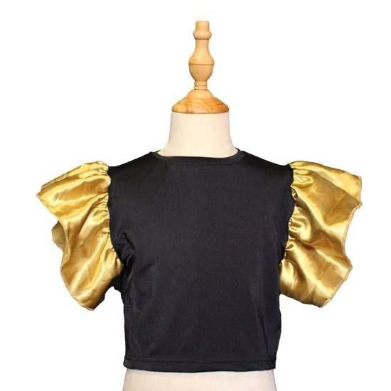 サテンフリルスリーブトップスは、サテン素材のスリーブが光沢感がりますので、ステージでの着用に最適です。