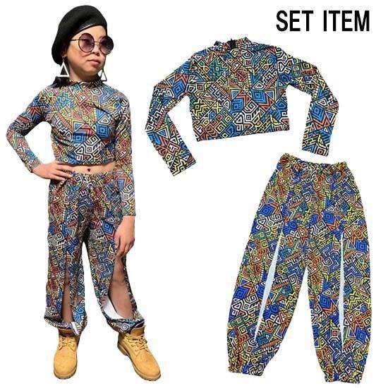 アフリカ柄ショート丈トップス&アフリカ柄スリットパンツSET サイズ110.120.130.140.150.160(M).170(L)