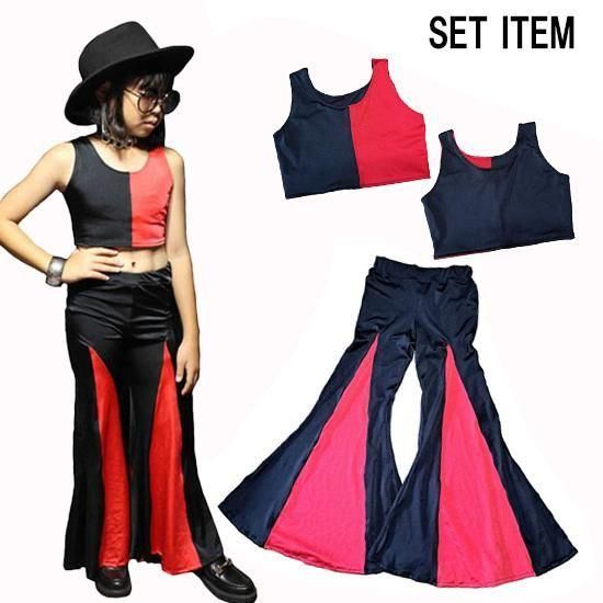 リバーシブルショートタンクとカラーフレアパンツSETUPです。