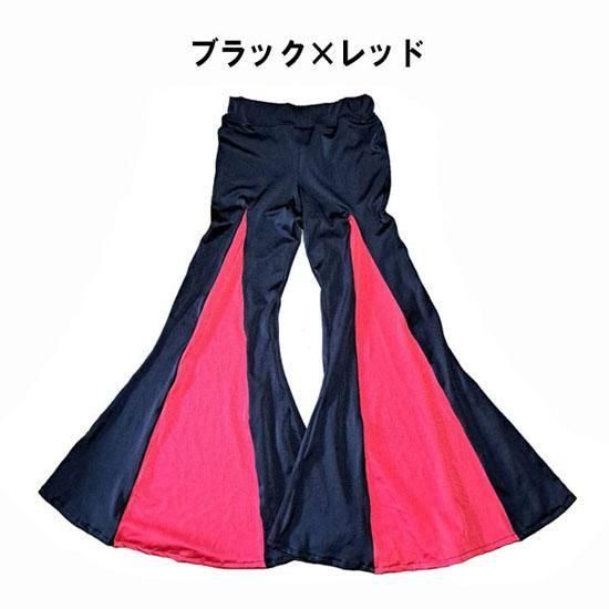このカラーフレアパンツは、前後でカラーが切り替わる斬新なデザインが特徴的です。腰周りはぴったりめのシルエットで、スタイリッシュに決まること間違いなし!さらに、お好きなカラーをお選びいただけるので、お気に入りのスタイルを演出できます。