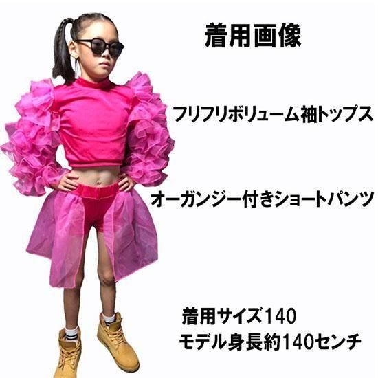フリフリボリューム袖トップス&オーガンジー付きショートパンツセット サイズ100.110.120.130.140.150.160(M).170(L)